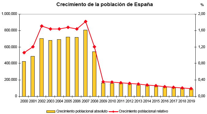 De hecho, la apuesta más arriesgada de todas las que se hacen en esta proyección (y siempre es obligado apostar en este tipo de ejercicios estadísticos) es la que se refiere a los flujos migratorios de entrada y salida. Es arriesgada porque la migración es el componente menos ligado a la propia población. Las hipótesis sobre fecundidad y sobre mortalidad se benefician de nuestro conocimiento previo sobre tales factores en España, pero la migración, especialmente la de entrada, está mucho más determinada por factores y condiciones relacionados con los lugares de origen. Y el posible origen de la inmigración es la totalidad del planeta. Es prácticamente imposible predecir de forma cabal tales flujos, ni en su origen ni en su intensidad. Y ha sido precisamente la inmigración el principal factor de cambio demográfico en nuestro país desde los años noventa. Recuérdese que el nuestro fue hasta entonces un país emigratorio, y que la intensidad inmigratoria ha sido completamente imprevista y ha alcanzado ritmos extraordinarios incluso si se los compara con países destacados por su inmigración histórica, como Argentina o EEUU. En 2007 se alcanzó el millón de entradas, así que se entenderá fácilmente por qué un país que todo el mundo consideraba ya estabilizado en torno a los 40 millones de habitantes ha alcanzado en pocos años una cifra de 47 millones.