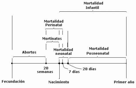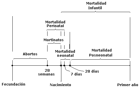 Mortalidad intrauterina e infantil, según la duración del embarazo: aborto, perinatal, mortinato, neonatal y posneonatal