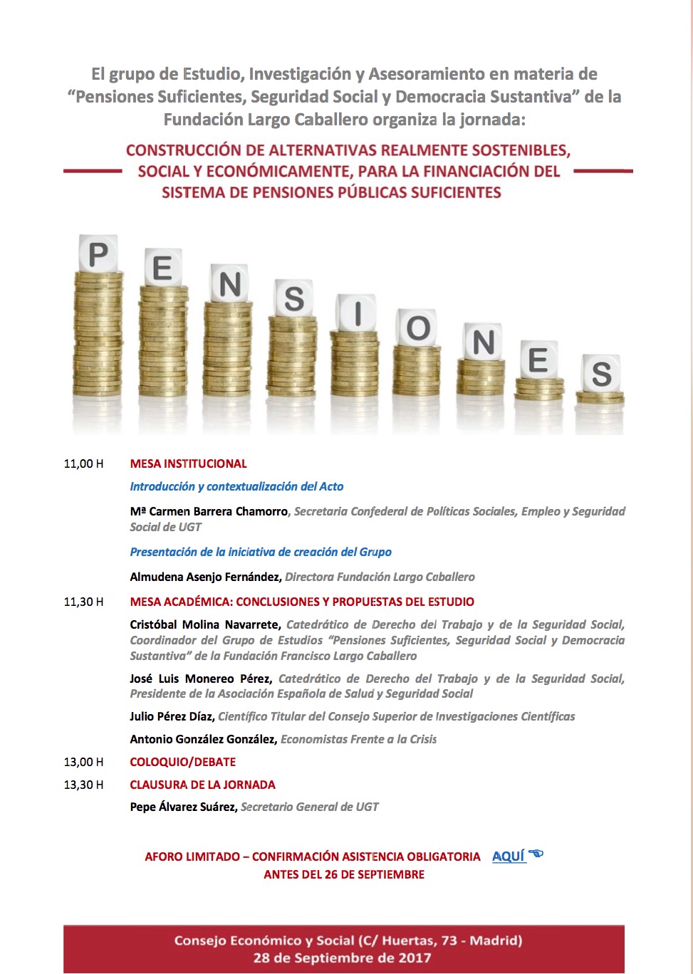 En un post anterior anuncié la celebración, el pasado 5 de abril, de la Jornada en que presentamos el recién creado grupo de Estudios sobre pensiones suficientes, Segurida Social universal y democracia, al amparo de la Fundación Largo Caballero y en el que tengo el honor de participar. Su motivo inmediato era elaborar un documento, crítico pero también de propuestas, acerca de la revisión de los Pactos de Toledo y la reforma del sistema de pensiones. A sus integrantes, de ámbito disciplinar e ideológico diverso, nos une apostar por una Seguridad Social equitativa como condición de su sostenibilidad, y no viceversa, frente a «manifiestos» recientes de otros sectores y recetas.