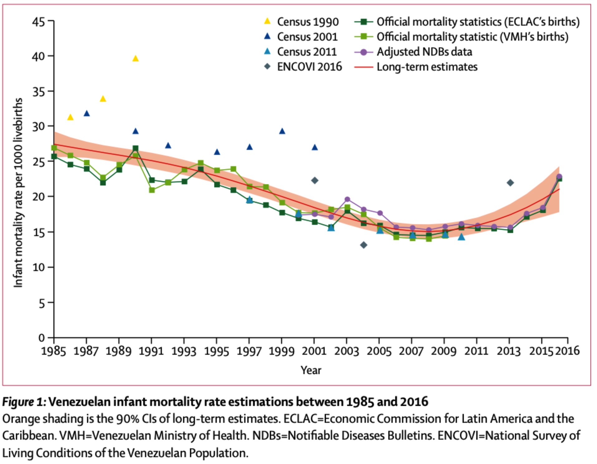 García, J. Correa, G. Rousset, B. (2019), Trends in infant mortality in Venezuela between 1985 and 2016: a systematic analysis of demographic data. The Lancet Global Health. DOI:10.1016/S2214-109X(18)30479-0.