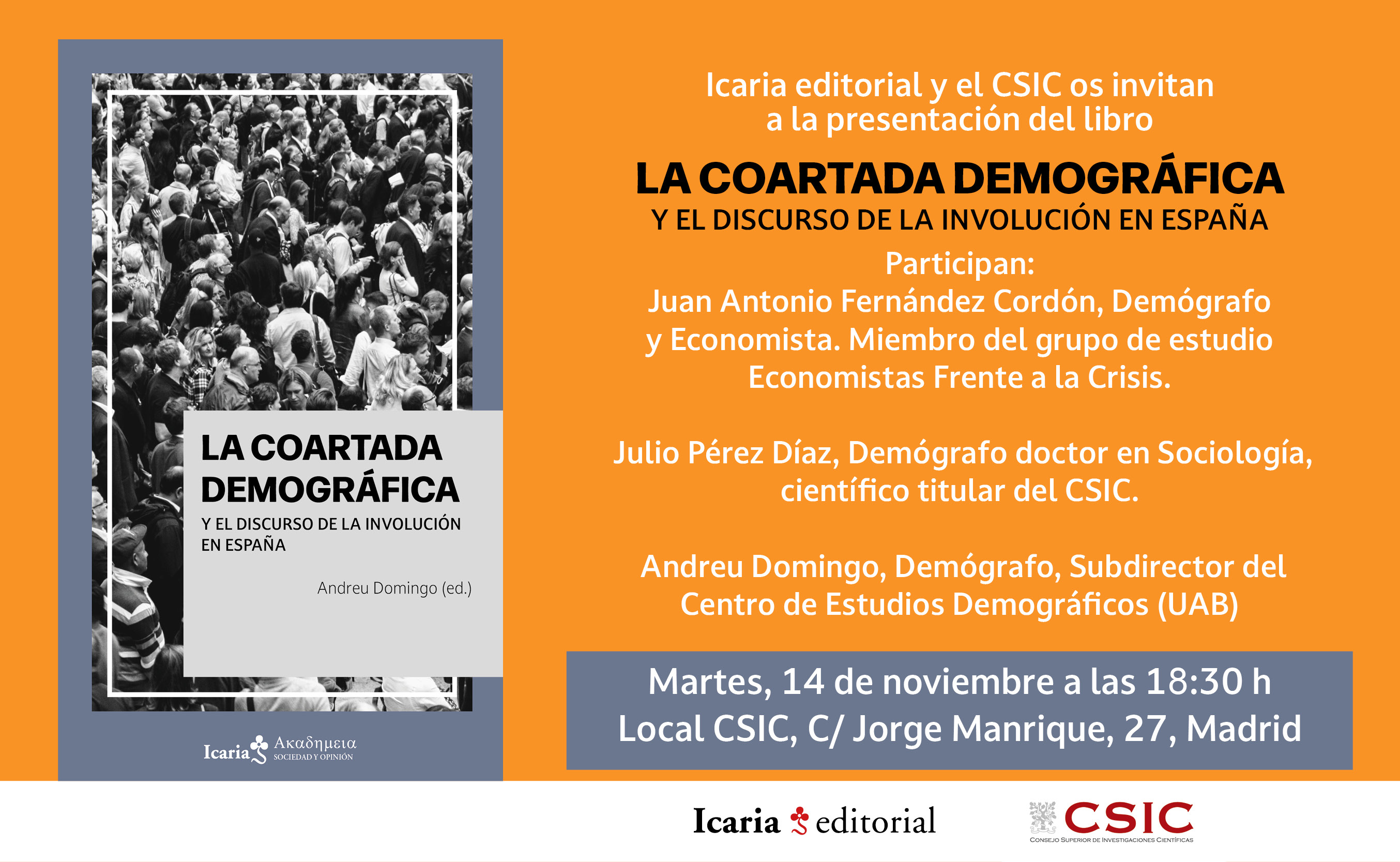 Andreu Domingo -Ed- (2023) La coartada demográfica y el discurso de la involución en España. Ed Icaria, Colecc. Akademeia, nº 193.ISBN: 978-84-19778-41-3